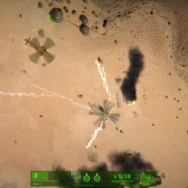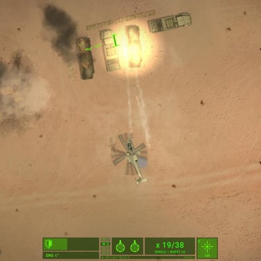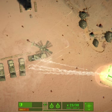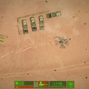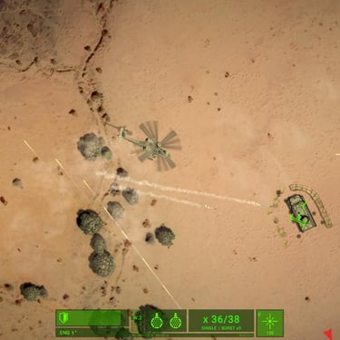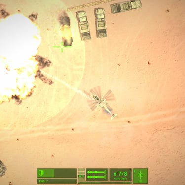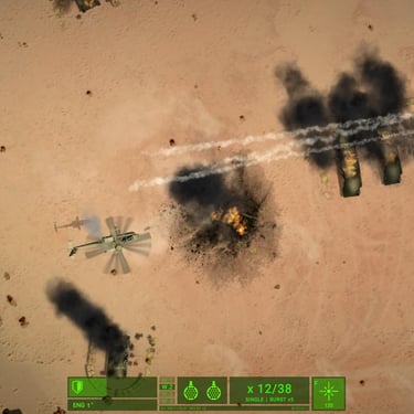 Steel blades cut the air. Bullets tear through the smoke. Your helicopter is your last fragile home hanging by a thread. Enemies swarm from all sides, and the only way forward is through the chaos. Every system failing, every hope fading. There’s no backup, no second chances. Just you, your gunner, and the endless void of war.