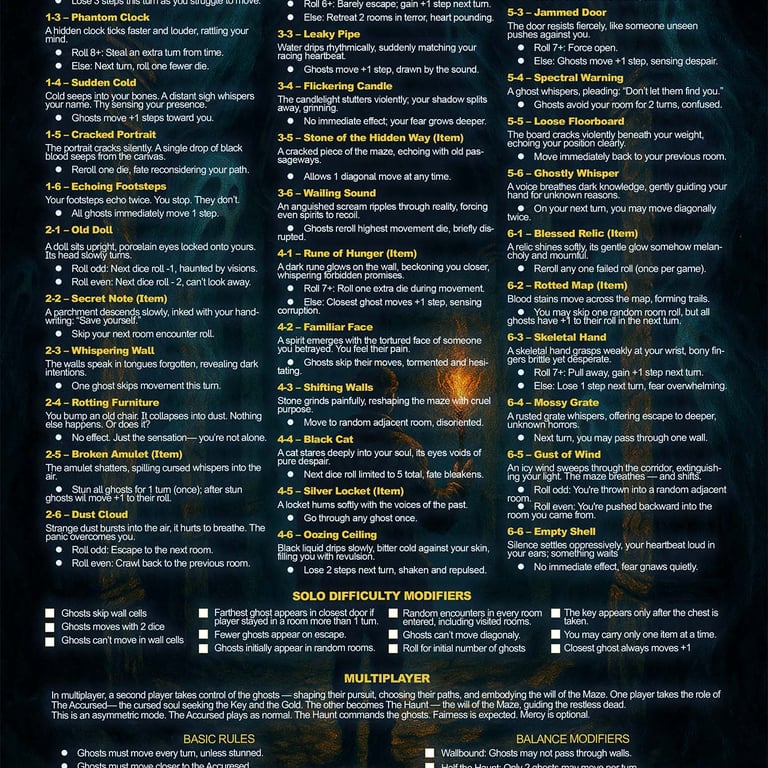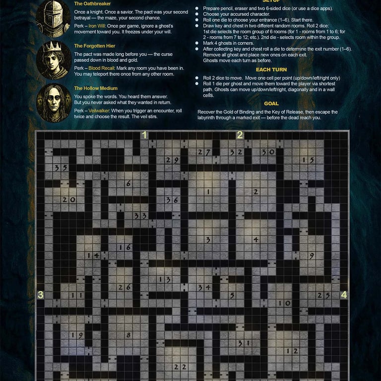 Armed with nothing but a pencil, two dice, and your wits, you must navigate its cursed corridors. Find the key. Take the gold. And escape before the ghosts rise.
